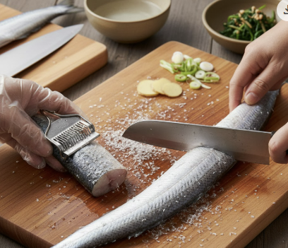 - 은빛 비늘을 칼로 살살 긁어 제거
