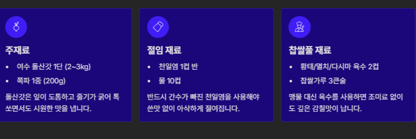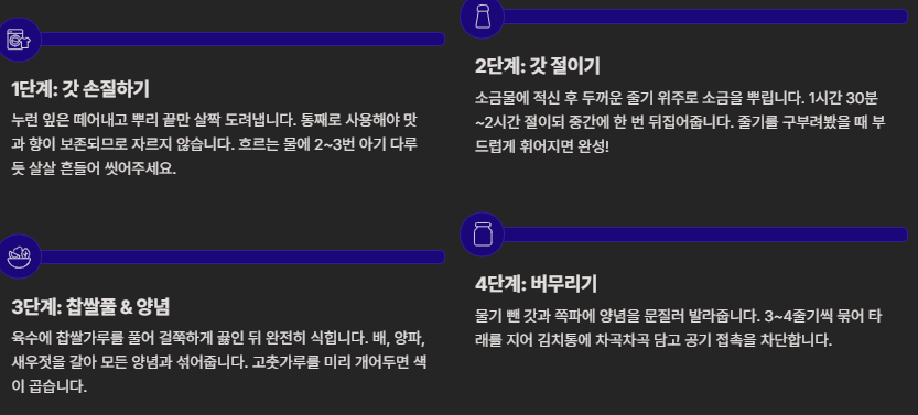 - 절이는 시간: 총 1시간 30분 ~ 2시간
