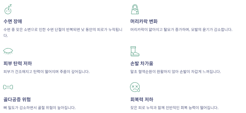 그래서 오늘은 갱년기 증상 30가지를 한 번에 이해할 수 있는 정리판을 준비했습니다. 몸·마음·생활 변화까지한눈에 볼 수 있도록 구성했으니, 지금 겪고 있는 불편함을 체크해 보시길 바랍니다.
