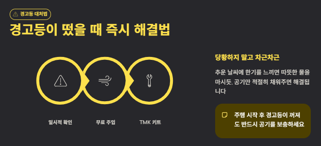 2. 타이어 공기압 경고등이 떴을 때 즉시 해결하는 방법은?