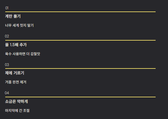 - 너무 많이 넣으면 계란 맛이 가려집니다