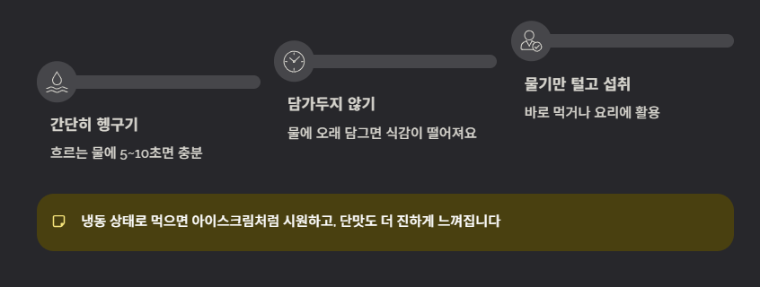- 물기만 털고 바로 섭취👉 이렇게만 해도 충분합니다.