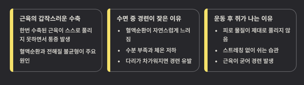 평소 멀쩡하다가도 예고 없이 찾아오는 다리 경련은 누구에게나 당황스러운 순간입니다.