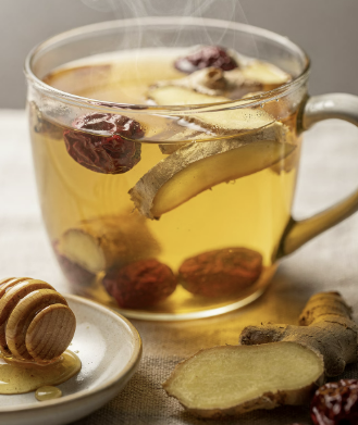 몸이 으슬으슬하고 목이 칼칼할 때는 대추의 짝꿍인 생강을 함께 활용해 보세요. 생강 역시 몸을 따뜻하게 해주는 대표적인 식재료죠. 대추와 생강을 얇게 썰어 1:1 비율로 꿀에 재워두었다가, 뜨거운 물에 타서 '대추생강차'로 즐겨보세요. 매콤하면서도 달콤한 맛이 몸의 냉기를 몰아내고 초기 감기를 잡는 데 큰 도움이 된답니다.