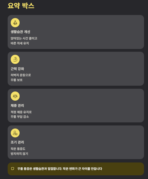 - 조기 관리가 통증 악화를 막음