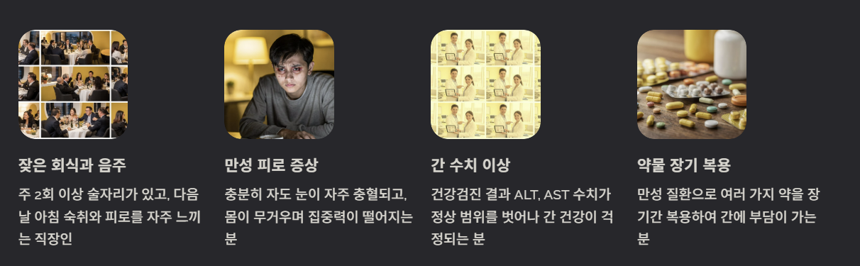 - 실제 상황: 잦은 회식이나 과로로 인해 간 수치(ALT, AST)가 경계선에 있던 분들이 꾸준히 복용했을 때 수치가 안정화되는 사례가 많습니다. 간세포의 파괴를 막고 염증을 줄여주기 때문입니다.