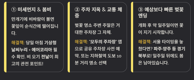3. [현실 조언] 벚꽃 나들이를 망치는 3가지 변수와 해결책