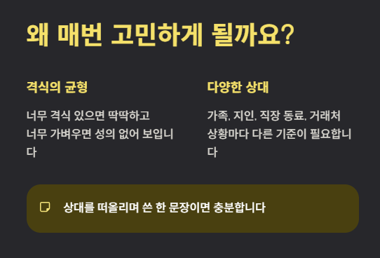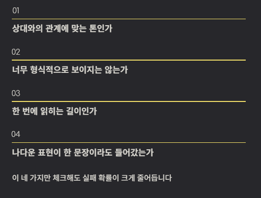- 과한 감성 표현은 피하기