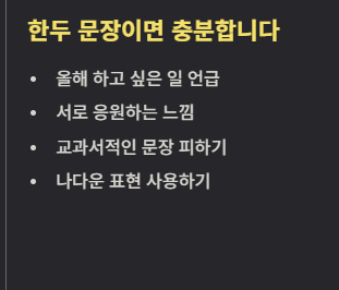 카드나 블로그에서는 한 문장 정도 여유를 둬도 좋습니다만, 핵심은 간결함입니다.