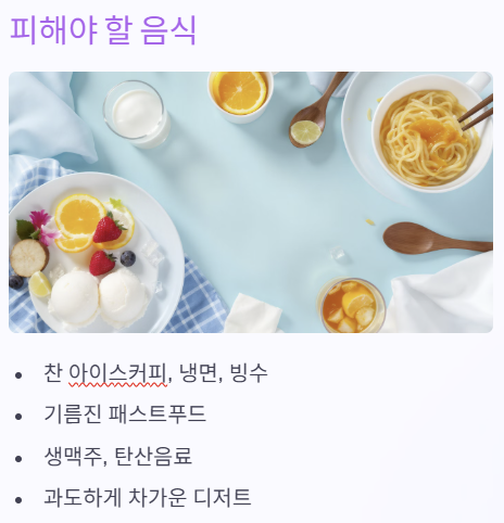 - 냉음료보다는 미지근한 물이나 따뜻한 차
