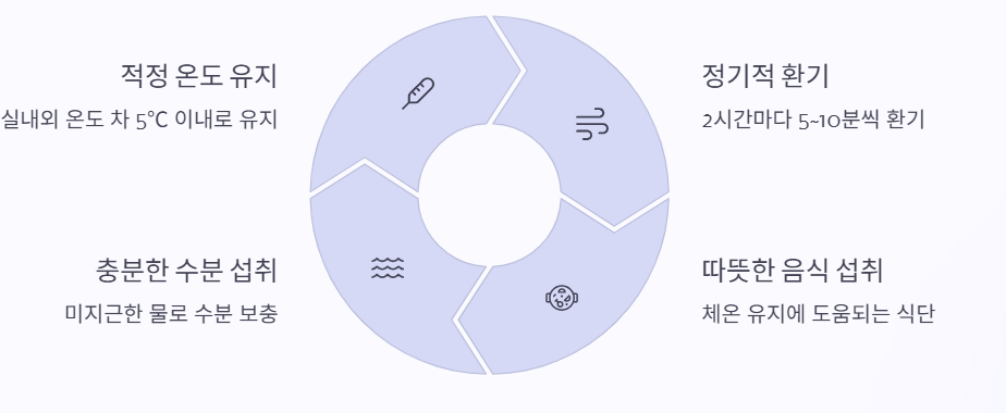 - 수면 시에는 배나 어깨를 덮어 체온 보호