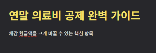 연말 의료비 공제는 연말정산에서 체감 환급액을 가장 크게 바꿀 수 있는 항목 중 하나입니다.
