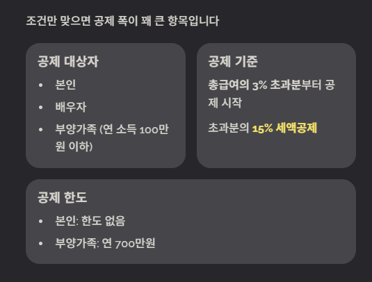 - 의료비는 총급여의 3% 초과분부터 공제