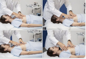 - 우측 상복부 지그시 눌러보기: 손가락으로 갈비뼈 아래쪽을 눌렀을 때 숨을 들이마시기 힘들 정도로 통증이 온다면 담낭염을 의심해 봐야 합니다.
