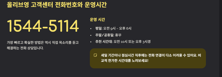 📋 올리브영 고객센터 이용 핵심 요약