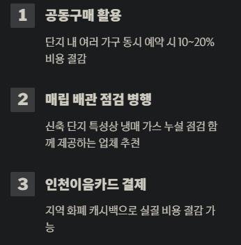 - 대단지 공동구매 활용: 같은 아파트 단지 내에서 여러 가구가 함께 예약하면 10~20% 정도 비용 절감이 가능합니다.