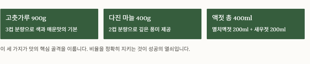 고춧가루, 마늘, 생강, 액젓 비율이 조금만 달라도 맛이 완전히 달라지다 보니 황금 비율이 중요합니다.