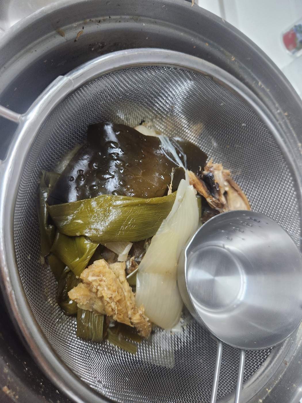 3. 대파, 양파, 멸치, 다시마, 황태 머리 몸 육수를 끊여 식혀둡니다.