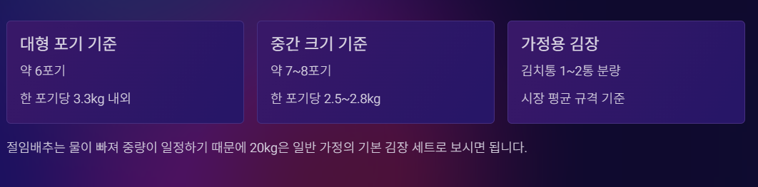 1. 절임배추 20kg = 몇 포기 기준일까?