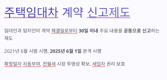 임대인과 임차인이 주택 임대차 계약 체결일(또는 계약금 입금일)로부터 30일 이내에 계약 기간, 보증금, 차임 등 주요 내용을 관할 신고기관에 공동으로 신고해야 하는 제도입니다.