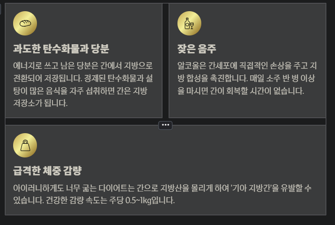 - 잦은 음주: 알코올은 간세포에 직접적인 손상을 주고 지방 합성을 촉진합니다.
