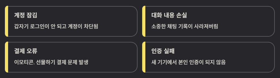 "갑자기 카카오톡 계정이 잠겼거나, 소중한 대화 내용이 사라져서 당황하신 적 있으시죠? 아니면 유료 이모티콘 결제 오류 때문에 애를 먹고 계실지도 모르겠네요." 우리 일상에서 떼려야 뗄 수 없는 앱이다 보니, 문제가 생기면 그만큼 답답함도 커지기 마련인데요.