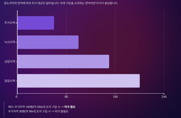 토지라고 해서 다 허가 대상은 아닙니다. 용도지역과 면적에 따라 달라지는데요.