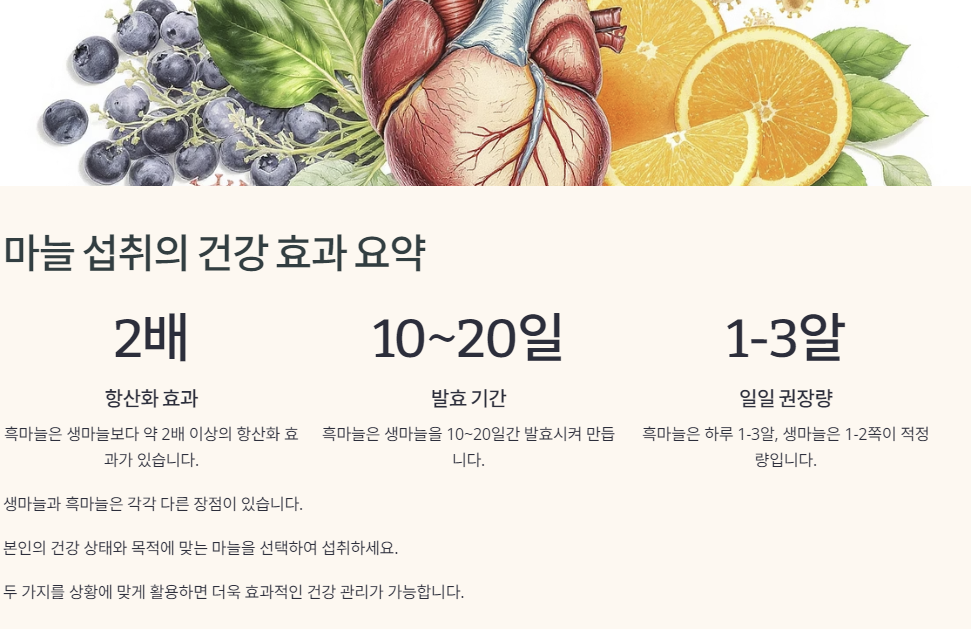 단, 위장 장애나 소화기 약한 분들은 생마늘보다 흑마늘이 훨씬 안전합니다.