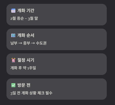 - 남부 → 중부 → 수도권 순으로 개화