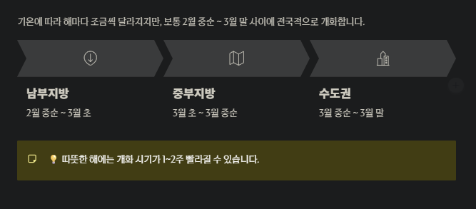 - 남부지방: 2월 중순 ~ 3월 초