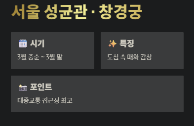 - 특징: 도심 속 매화 감상
