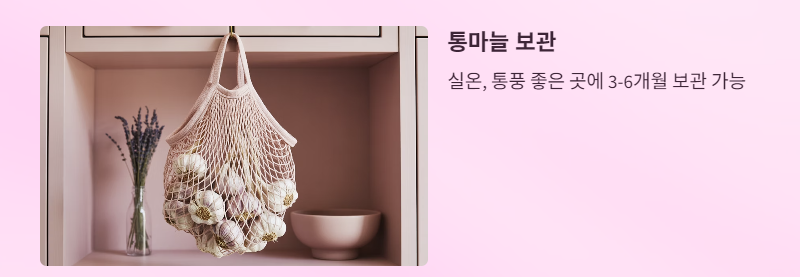 📌 통마늘 보관법 – 가장 오래가는 전통 방식입니다. 실내 베란다, 다용도실, 처마 밑이 이상적인 장소입니다.