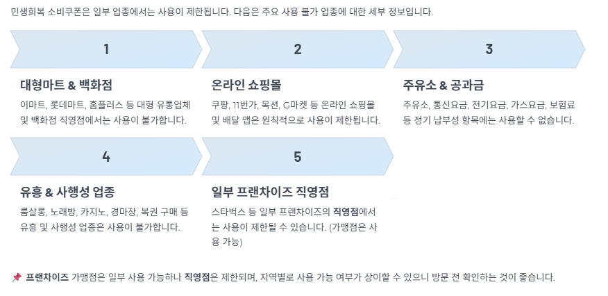 → 민생쿠폰은 지역 소상공인 소비 활성화 목적이므로 온라인 사용은 제한됩니다.