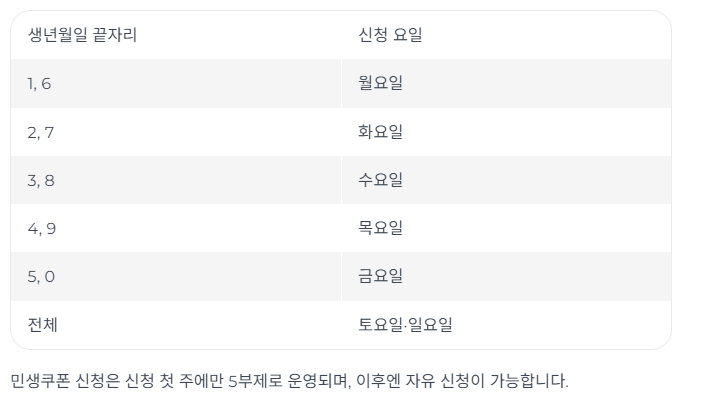 📌 예: 1991년생 → 끝자리 1 → 월요일 신청