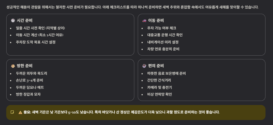 이 기준만 세워도 새해 일출 명소 해돋이 명소 추천 선택이 훨씬 쉬워집니다.
