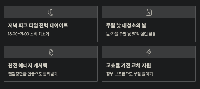- 혜택: 직전 2개년 동월 평균 대비 3% 이상 절감 시, 절감량 1 kWh당 30원~100원을 다음 달 요금에서 차감해 줍니다.